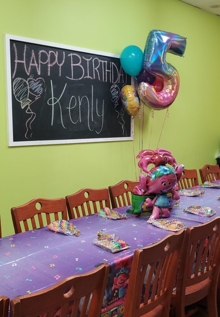- Please keep decor within reason for quick setup and take down. All items must be removed by the end time of the party room. Note the late fee policy below.